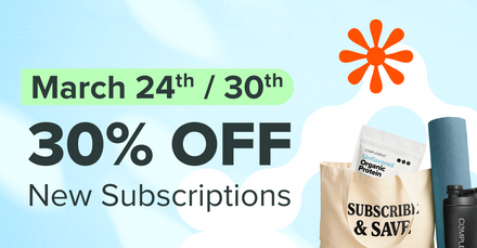 - 30% off today, 15% off future orders.