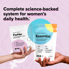 The ForHer Essential System is formulated, produced, and third-party tested right here in the USA. Unlike most vitamin brands “white-labeling” products produced by another company, at Complement, we do it all ourselves. From sourcing to shipping, we’re with you every step of the way.