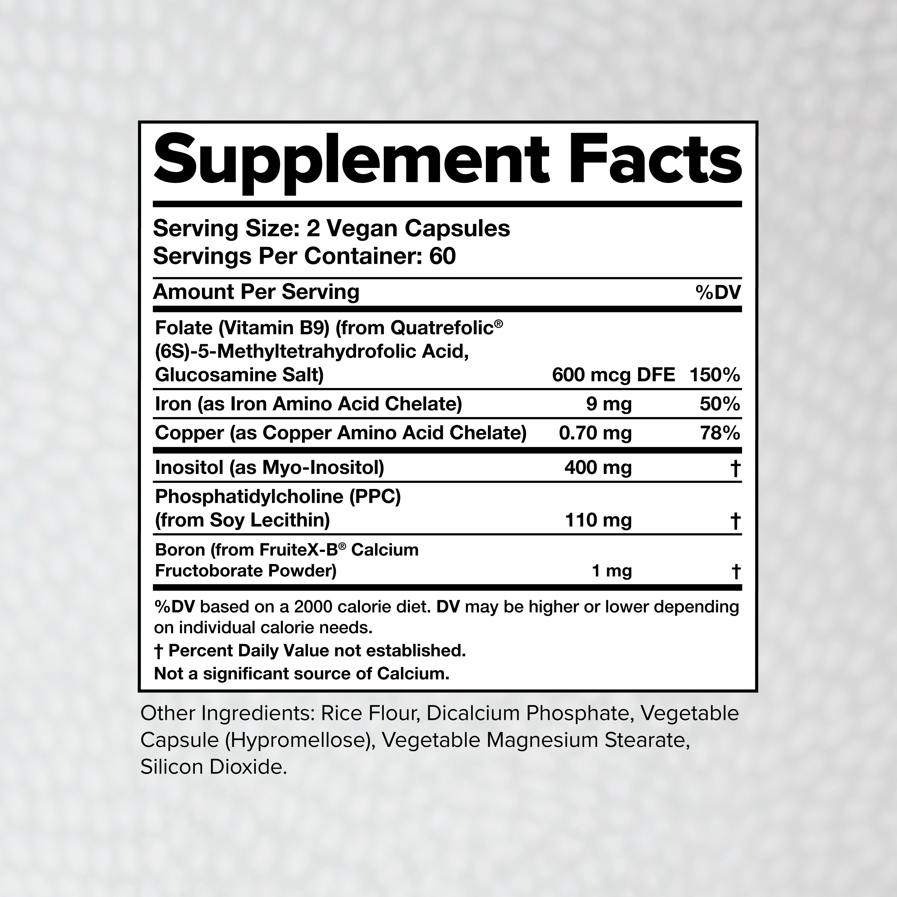 Works with magnesium and D3 to support the absorption and metabolism of calcium and promote bone density and skeletal health. The natural Calcium Fructoborate form of boron is well-absorbed and utilized by the body.*